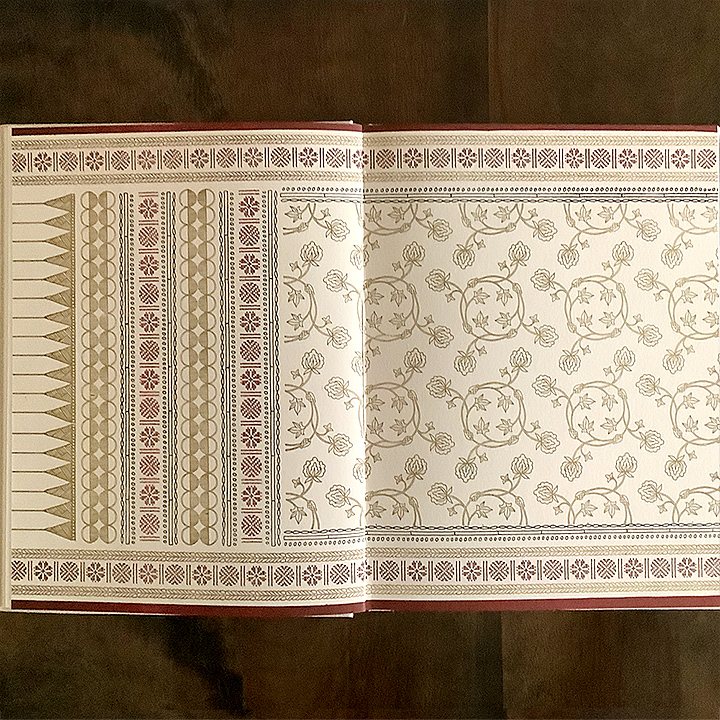 インドでは多様なパターン制作方法が息づいており、本書はその一つ、布に木版印刷されたパターンという伝統からインスピレーションを得ています。