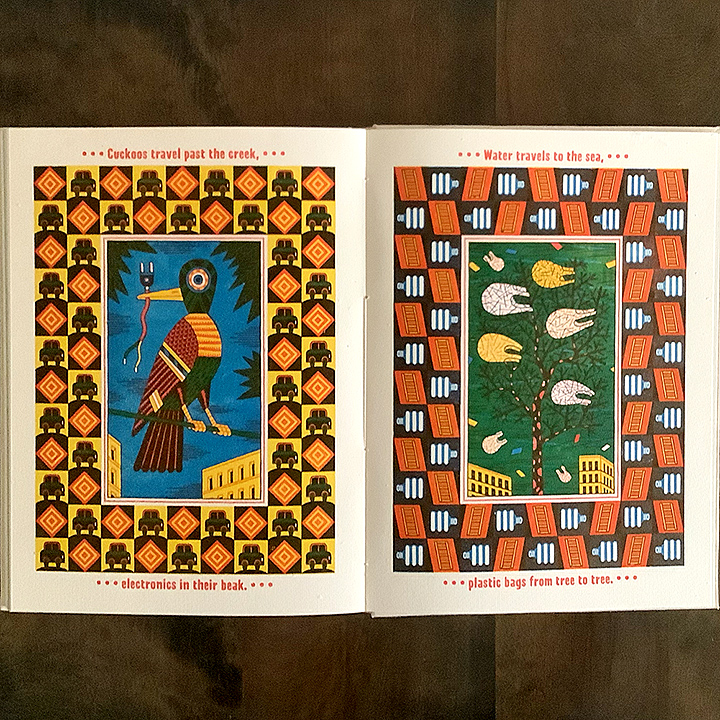 木版で手刷りされた布製の表紙は、アーティストたちがインスピレーションを得た伝統的な版木へのオマージュです。